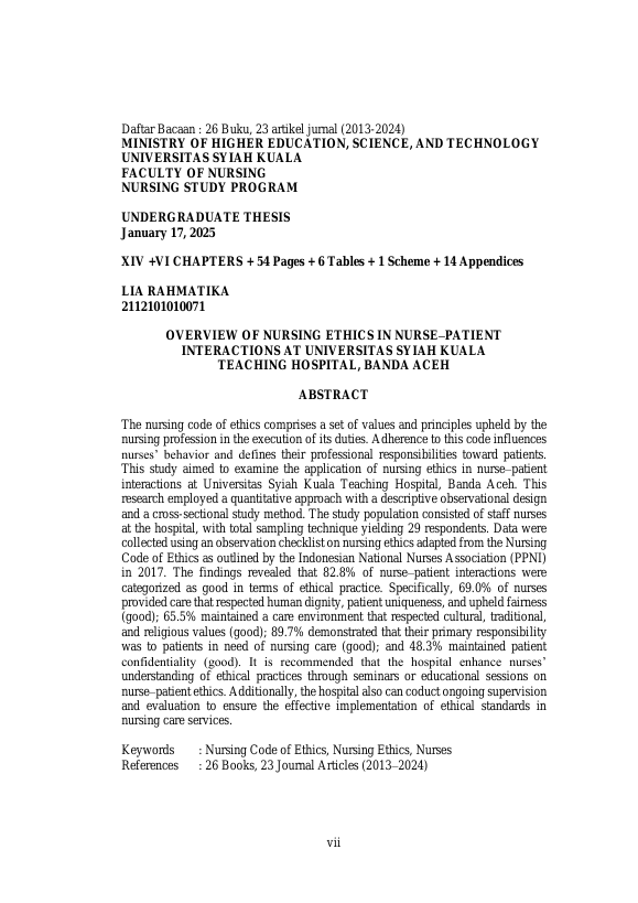 Baca Juga : GAMBARAN CARING ANTAR PERAWAT DI RUMAH SAKIT PENDIDIKAN UNIVERSITAS SYIAH KUALA (Miftahul Khairiyah.MR, 2023)