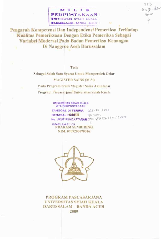 Baca Juga : PENGARUH LATAR BELAKANG PENDIDIKAN, INDEPENDENSI PEMERIKSA DAN KEPATUHAN PADA KODE ETIK TERHADAP KINERJA AUDITOR PADA INSPEKTORAT PROVINSI ACEH (LISMAITA, 2016)