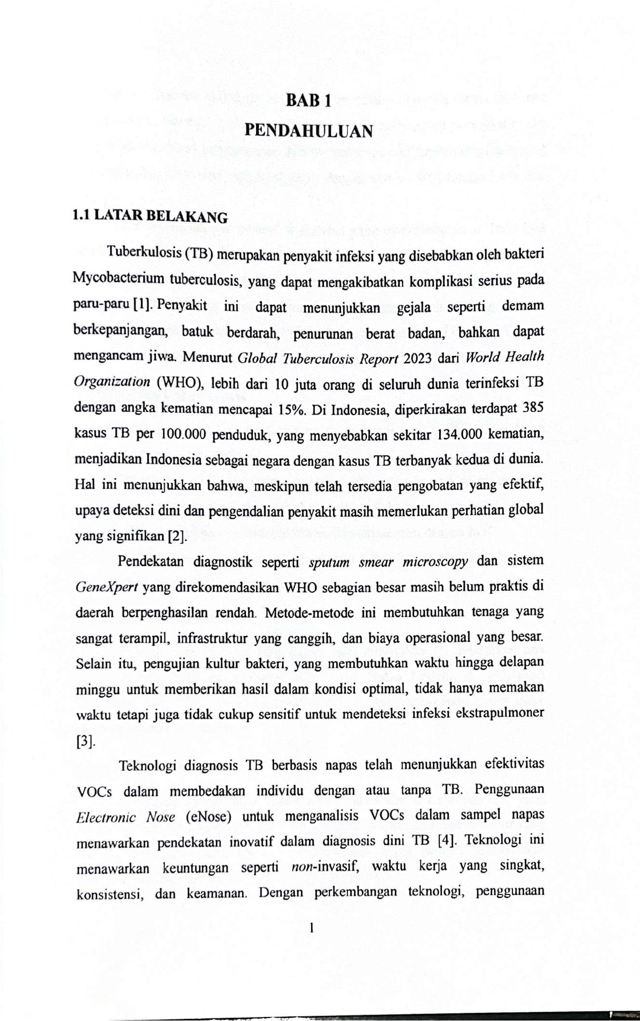 MUHAMMAD DAFFA, RANCANG BANGUN DETEKSI DINI TUBERKULOSIS MELALUI HEMBUSAN NAPAS YANG TERINTEGRASI INTERNET OF THINGS. Banda Aceh Fakultas Teknik Elektro dan Komputer,2025