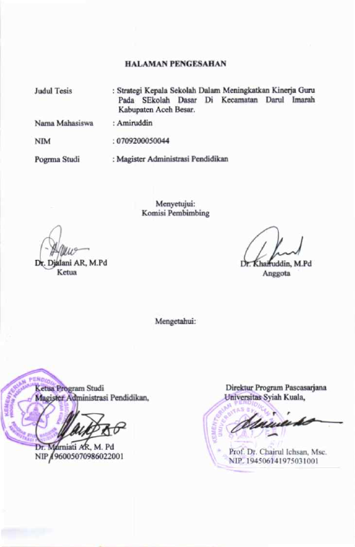 Baca Juga : STRATEGI KEPALA SEKOLAH DALAM MENINGKATKAN KINERJA GURU PADA SMA NEGERI 1 LHOONG KABUPATEN ACEH BESAR (Amirul Kisra, 2014)