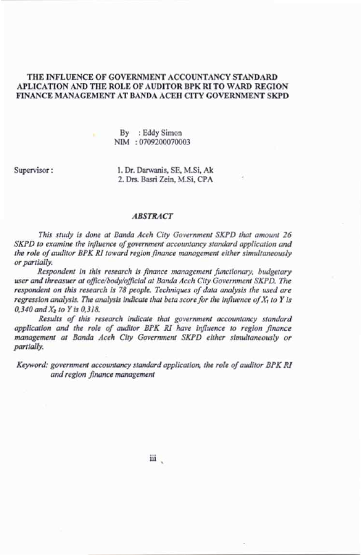 Baca Juga : PENGARUH PENERAPAN STANDAR AKUNTANSI PEMERINTAHAN DAN EFEKTIVITAS SISTEM PENGENDALIAN INTERN PEMERINTAH TERHADAP KUALITAS LAPORAN KEUANGAN PEMERINTAH DAERAH DAN IMPLIKASINYA TERHADAP AKUNTABILITAS PENGELOLAAN KEUANGAN DAERAH (STUDI PADA SKPA PEMERINTAH ACEH) (Liza Fatmi, 2016)