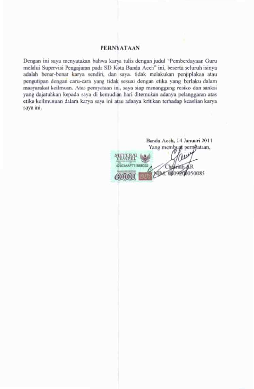 Baca Juga : SUPERVISI PENGAWAS MADRASAH DALAM MENINGKATKAN KOMPETENSI PROFESIONAL GURU PADA MIN MEULABOH KABUPATEN ACEH BARAT (HANIFUDDIN JAMIN, 2015)