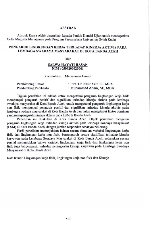 Baca Juga : PENGARUH LINGKUNGAN KERJA FISIK DAN NON FISIK TERHADAP MOTIVASI KERJA SERTA DAMPAKNYA TERHADAP KINERJA STAF LEMBAGA SWADAYA MASYARAKAT DI KABUPATEN ACEH UTARA (FAZARWATI, 2014)