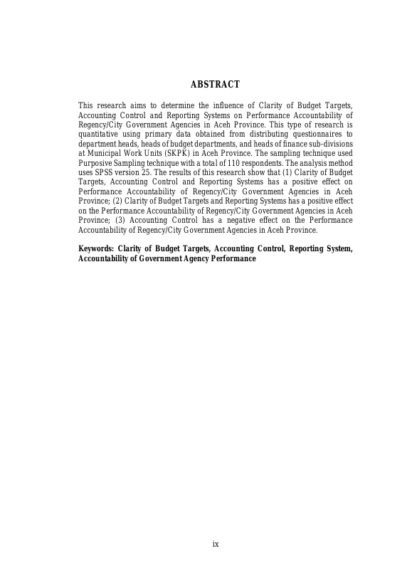 Baca Juga : PENGARUH KEJELASAN SASARAN ANGGARAN, PENGENDALIAN AKUNTANSI DAN SISTEM PELAPORAN TERHADAP AKUNTABILITAS KINERJA INSTANSI PEMERINTAH DAERAH (STUDI EMPIRIS PADA PEMERINTAH DAERAH KABUPATEN PIDIE) (Nelliyanti, 2024)