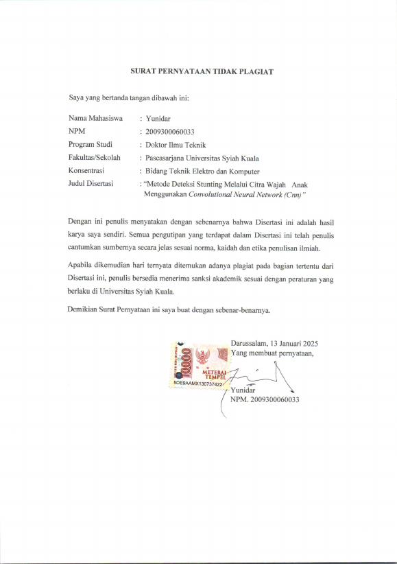 Baca Juga : METODE DETEKSI STUNTING MELALUI CITRA WAJAH ANAK MENGGUNAKAN CONVOLUTIONAL NEURAL NETWORK (CNN) (Yunidar, 2025)