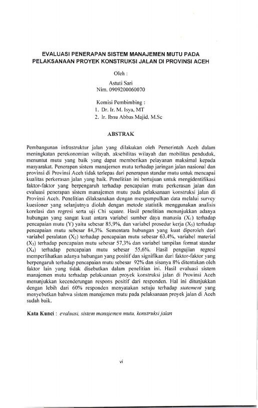 SISTEM MANAJEMEN MUTU IS0-9000 TERHADAP PROYEK KONSTRUKSI GEDUNG DI BANDA ACEH (Siti Rahmah, 2013)