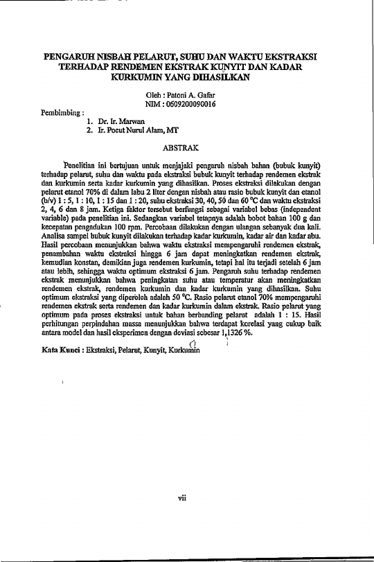 Baca Juga : PENGARUH NISBAH PELARUT, SUHU DAN WAKTU EKSTRAKSIRNTERHADAP RENDEMEN EKSTRAK KUNYIT DAN KADARRNKURKUMIN YANG DIHASILKAN (Patoni A gafar, 2025)