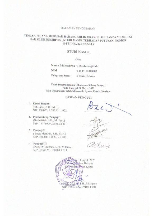 Baca Juga : TINDAK PIDANA MERUSAK BARANG MILIK ORANG LAIN TANPA MEMILIKI HAK OLEH RESIDIVIS ( STUDI KASUS TERHADAP PUTUSAN NOMOR 104/PID.B/2023/PN.SKL ) (DINDA SAJIDAH, 2025)
