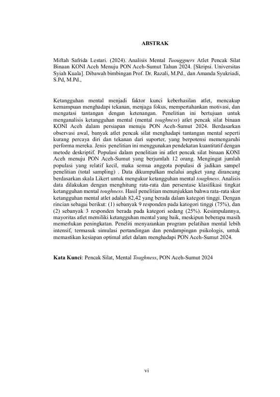 MIFTAH SAFRIDA LESTARI, ANALISIS MENTAL TOUGHNESS ATLET PENCAK SILAT BINAAN KONI ACEH MENUJU PON ACEH-SUMUT TAHUN 2024. Banda Aceh Fakultas KIP,2025