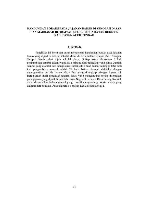 Baca Juga : PEMERIKSAAN KANDUNGAN BORAKS PADA BAKSO DAGING SAPI DI KABUPATEN BIREUEN (RAHMA YANTI, 2014)