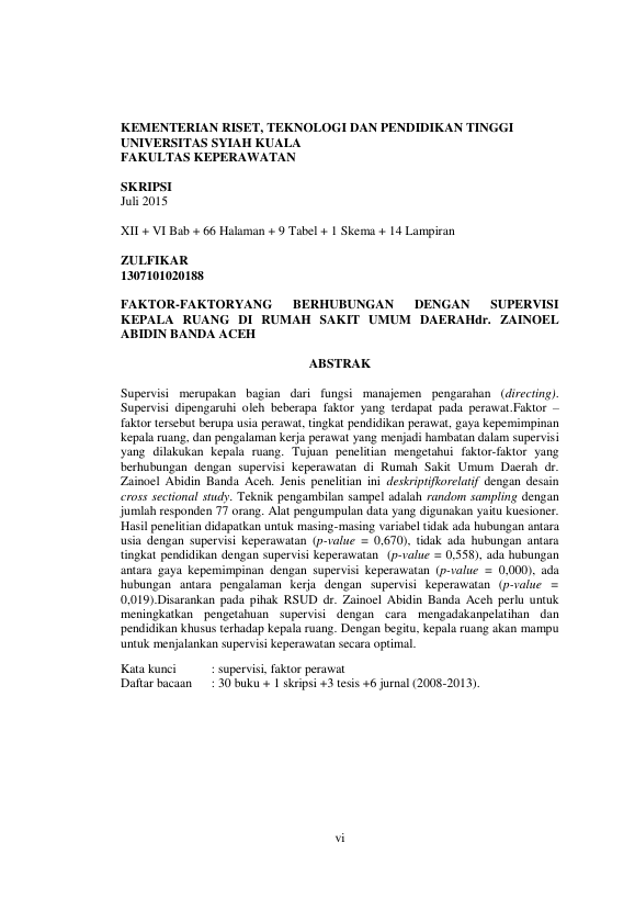 Baca Juga : FAKTOR-FAKTOR YANG MEMPENGARUHI SUPERVISI KEPALA RUANG DI RUMAH SAKIT UMUM DAERAHDR. ZAINOEL ABIDIN BANDA ACEH (Zulfikar, 2015)