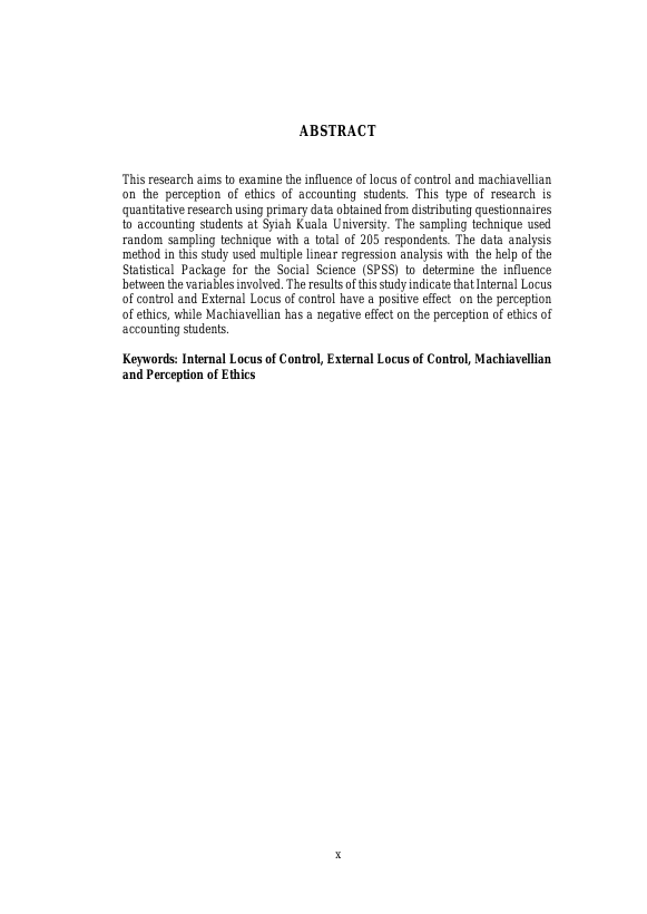 Baca Juga : PENGARUH PEMIKIRAN MORAL DAN LOCUS OF CONTROL TERHADAP PERILAKU ETIS MAHASISWA PENDIDIKAN PROFESI AKUNTANSI FAKULTAS EKONOMI UNIVERSITAS SYIAH KUALA (Akmal, 2013)