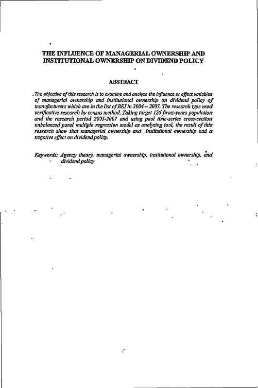 Baca Juga : PENGARUH KEPEMILIKAN INSTITUSIONAL, KEPEMILIKAN INDIVIDU, DAN KEPEMILIKAN MANAJERIAL TERHADAP DIVIDEN PAYOUT RATIO PADA PERUSAHAAN NON KEUANGAN YANG TERDAFTAR DI BURSA EFEK INDONESIA 2012-2016 (RANI DHURI, 2017)