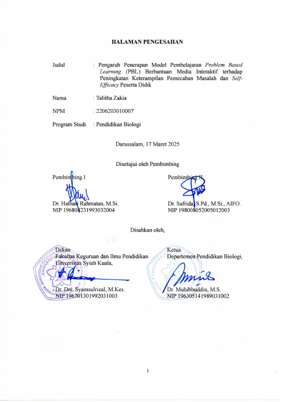 Baca Juga : IMPLEMENTASI MODEL PROBLEM BASED LEARNING (PBL) UNTUK MENINGKATKAN SELF EFFICACY DAN PROBLEM SOLVING SISWA PADA MATERI SISTEM EKSKRESI DI MTSN 3 BANDA ACEH (Elvika Murliani, 2025)