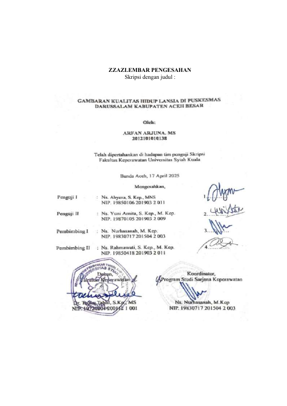 ARFAN ARJUNA. MS, GAMBARAN KUALITAS HIDUP LANSIA DI PUSKESMAS DARUSSALAM KABUPATEN ACEH BESAR. Banda Aceh Fakultas Keperawatan,2025