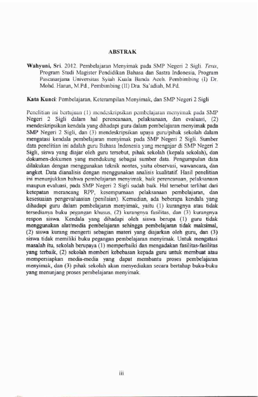 Baca Juga : TINGKAT KEMAMPUAN MENYIMAK PUISI SISWA KELAS II SD NEGERI 69 BANDA ACEH (FARADHILA RISNA, 2014)