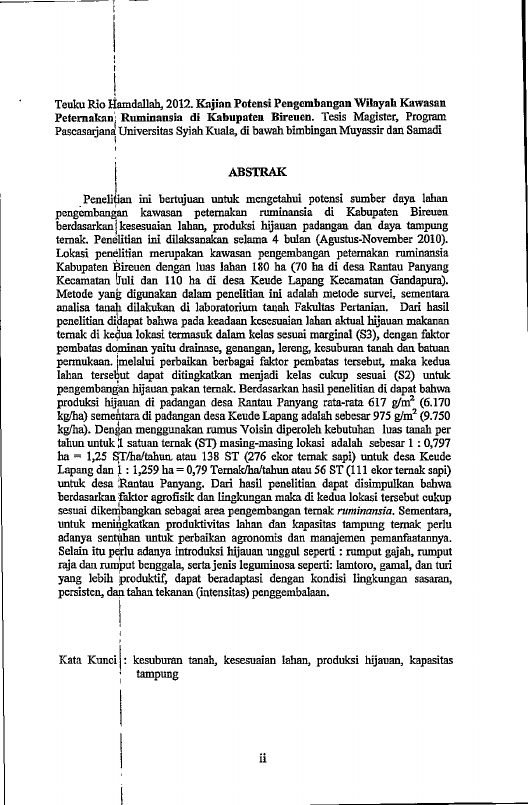Teuku Rio Hamdallah, KAJIAN POTENSI PENGEMBANGAN WILAYAH KAWASAN PETERNAKAN RUMINANSIA DI KABUPATEN BIREUEN. Banda Aceh prog. studi magister pertanian,2012