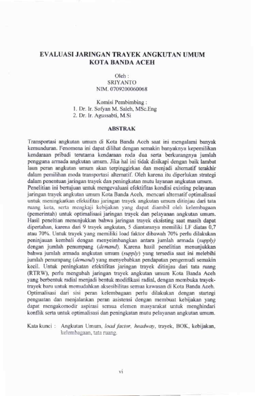 Sriyanto, EVALUASI JARINGAN TRAYEK ANGKUTAN UMUM KOTA BANDA ACEH. Banda Aceh Prog. Studi Magister Teknik Sipil,2010