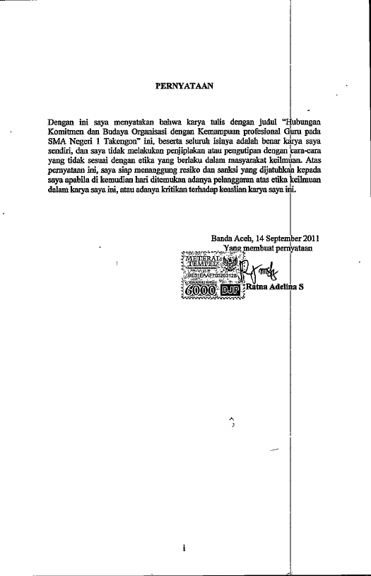 RATNA ADELINA S, HUBUNGAN KOMITMEN DAN BUDAYA ORGANISASI DENGAN KEMAMPUAN PROFESIONAL GURU PADA SMA NEGERI 1 TAKENGON. Banda Aceh Program Studi Magister Administrasi Pendidikan,2012