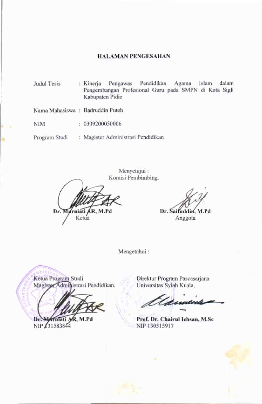 Baca Juga : KINERJA PENGAWAS PENDIDIKAN AGAMA ISLAM DALAM PENGEMBANGAN PROFESIONAL GURU PADA SMPN DI KOTA SIGLI KABUPATEN PIDIE (Badruddin Puteh, 2025)