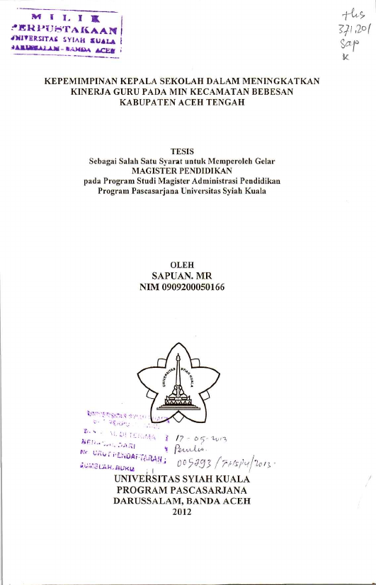 Baca Juga : KEPEMIMPINAN KEPALA SEKOLAH DALAM MENINGKATKAN KINERJA GURU PADA SEKOLAH DASAR LUAR BIASA NEGERI BANDA ACEH (Kasidah, 2016)