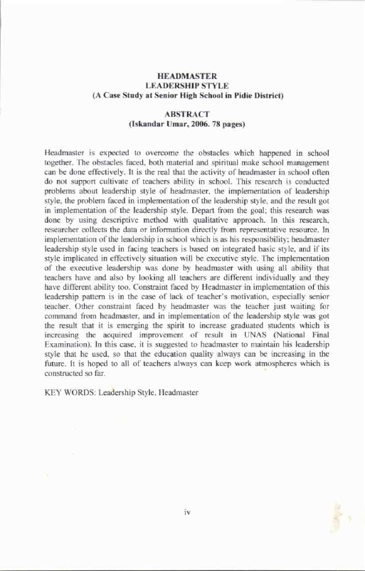 Baca Juga : KEPEMIMPINAN KEPALA SEKOLAH DALAM MENINGKATKAN MUTU PENDIDIKAN PADA SD GUGUS MANGGA KECAMATAN JAYA BARU BANDA ACEH (CASWO, 2018)