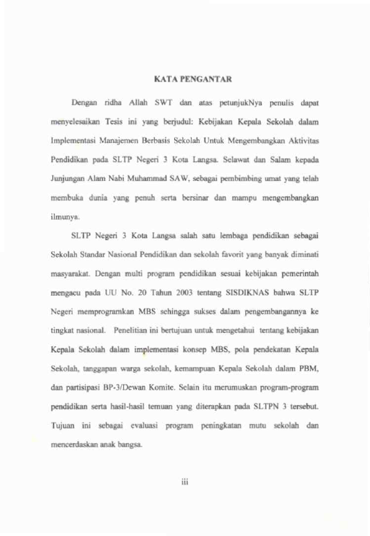 Usman, KEBIJAKAN KEPALA SEKOLAH DALAM IMPLEMENTASI MANAJEMEN BERBASIS SEKOLAH UNTUK MENGEMBANGKAN AKTTVITAS PENDIDIKAN PADA SLTP NEGERI 3 KOTA LANGSA. Banda Aceh magister manajemen pendidikan,2007
