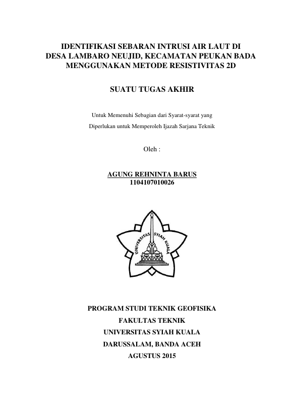 Baca Juga : STUDI INTRUSI AIR LAUT PADA AKUIFER MENGGUNAKAN METODE RESISTIVITAS 2D DI DESA LAMBADA LHOK, ACEH BESAR (Akmal Muhni, 2015)