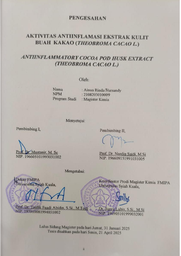 Baca Juga : UJI AKTIVITAS ANTIOKSIDAN EKSTRAK AIR KULIT BUAH KAKAO (THEOBROMA CACAO L.) (JIMMY NAINGGOLAN, 2021)