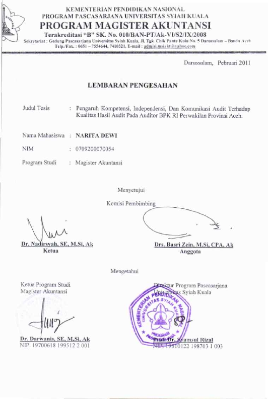 Baca Juga : PENGARUH INDEPENDENSI, SKEPTISISME PROFESIONAL AUDITOR, PENERAPAN STANDAR AUDIT, DAN ETIKA AUDIT TERHADAP KUALITAS HASIL AUDIT (STUDI PADA AUDITOR BPK RI PERWAKILAN PROVINSI ACEH) (Fatria Ningsih, 2017)