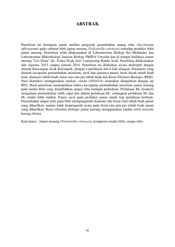 Baca Juga : PENGARUH PENAMBAHAN AMPAS TEBU TERHADAP KUALITAS BIBIT DAN PRODUKSI JAMUR MERANG (muslim, 2015)