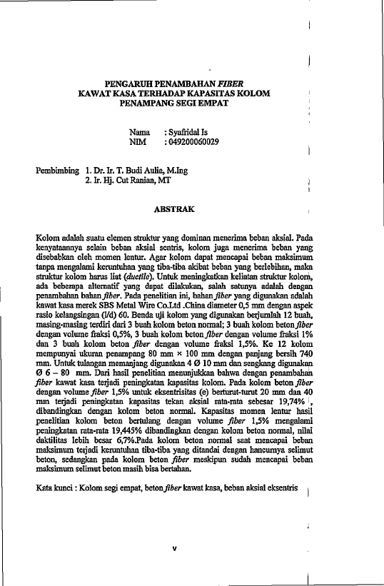 Syafridal IS, PENGARUH PENAMBAHAN FIBER KAWAT KASA TERHADAP KAPASITAS KOLOM PENAMPANG SEGI EMPAT. Banda Aceh Prog. Studi Magister Teknik Sipil,2009