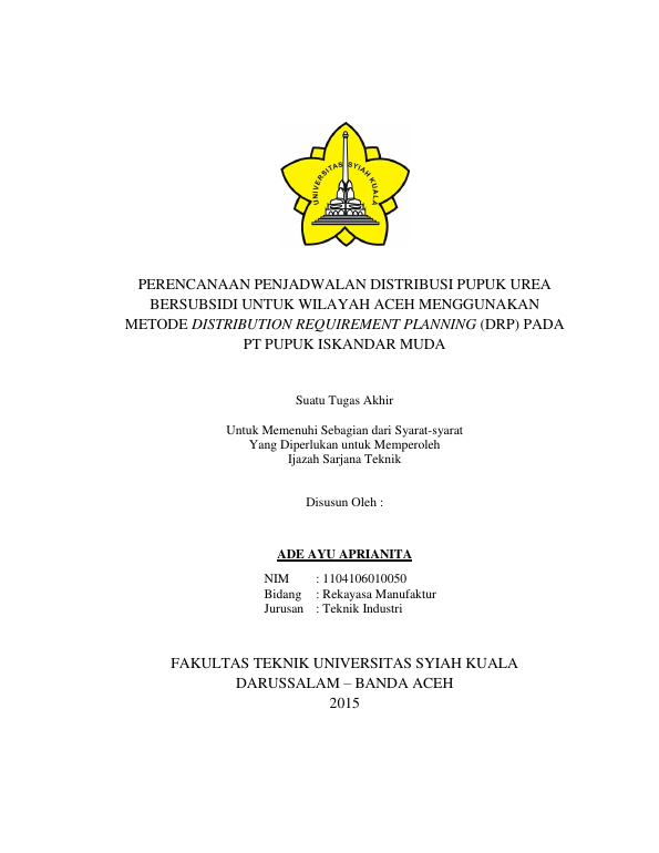 Baca Juga : PENERAPAN METODE DISTRIBUTION REQUIREMENT PLANNING (DRP) DALAM PENGOPTIMALAN AKTIVITAS SISTEM DISTRIBUSI (STUDI KASUS GUDANG DISTRIBUTOR YAKULT CABANG BANDA ACEH ) (Rizka Ayu Putri, 2016)