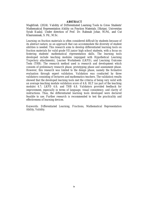 Baca Juga : KETERLIBATAN DAN KEMAMPUAN BERPIKIR KREATIF MATEMATIS SISWA MELALUI PEMBELAJARAN BERDIFERENSIASI BERBASIS RME PADA MATERI BENTUK ALJABAR DI SMP (Nisrina Dwi Putri, 2025)