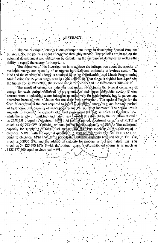 Razali, OPTIMASI SISTIM PENYEDIAAN ENERGI DI DAERAH ISTIMEWA ACEH. Banda Aceh Prog. Studi Magister Ilmu Ekonomi,