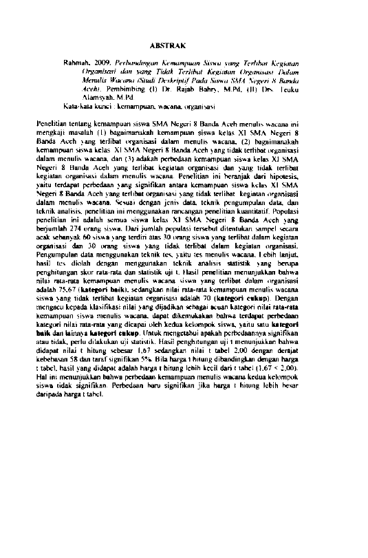 Baca Juga : KEMAMPUAN MENULIS TEKS DESKRIPSI SISWA KELAS VII SMP NEGERI 12 BANDA ACEH (WILDA AZLINA, 2015)