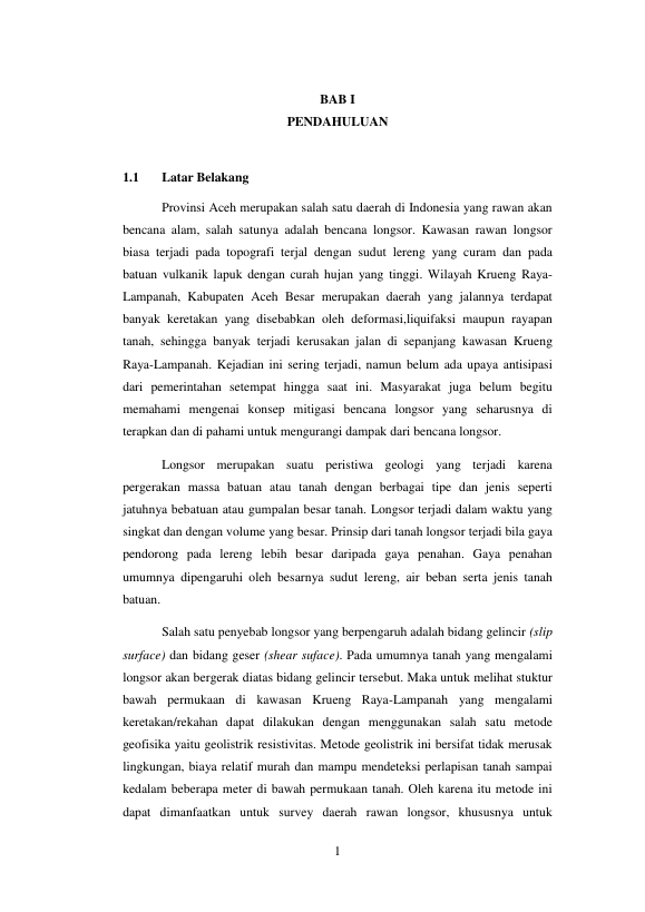 Cut Rohaya, IDENTIFIKASI ZONA BIDANG GELINCIR RAWAN RNLONGSOR MENGGUNAKAN METODE RNGEOLISTRIK DI KAWASAN KRUENG RAYA-LAMPANAH, ACEH BESAR. Banda Aceh Universitas Syiah Kuala,2015