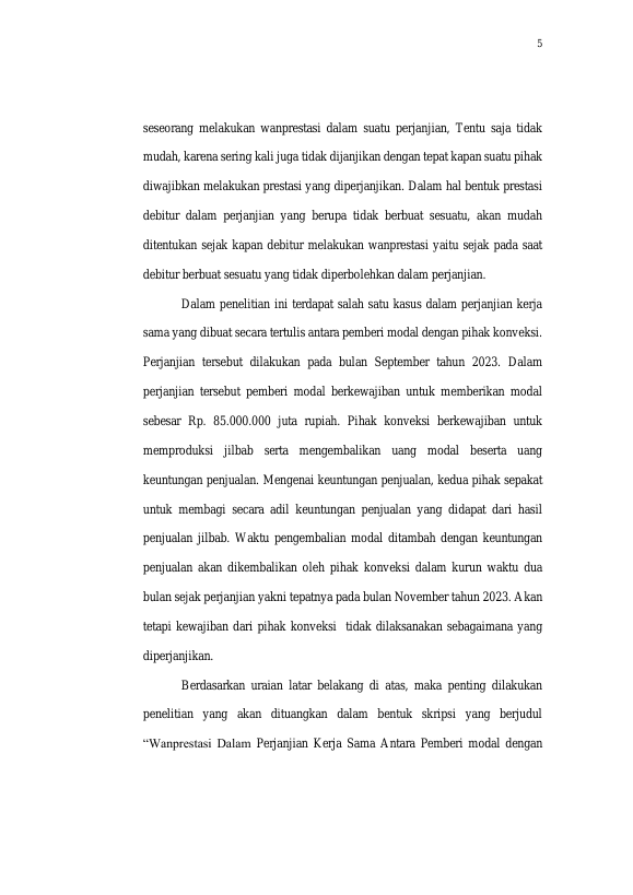 Baca Juga : WANPRESTASI PELAKSANAAN PERJANJIAN KERJA SAMA BISNIS KAFE ( SUATU PENELITIAN DI DOMESTIQ COFFEE BANDA ACEH) (Karan Janual Haqi, 2024)