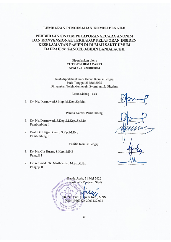 Baca Juga : GAMBARAN BUDAYA KESELAMATAN PASIEN DI RUMAH SAKIT UMUM MEUTIA BANDA ACEH (DINA LORENZA, 2024)
