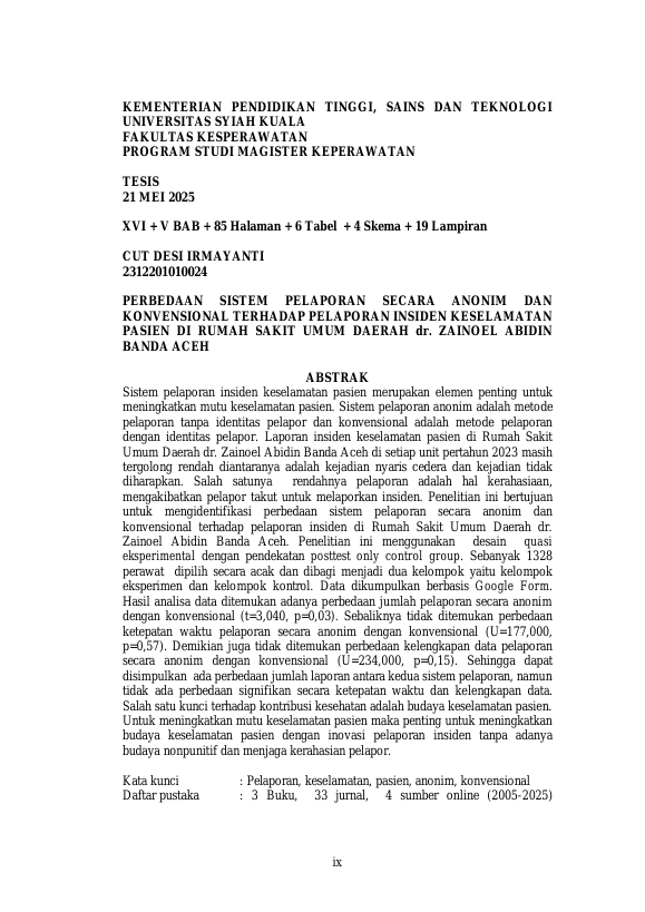 Baca Juga : GAMBARAN BUDAYA KESELAMATAN PASIEN DI RUMAH SAKIT UMUM MEUTIA BANDA ACEH (DINA LORENZA, 2024)