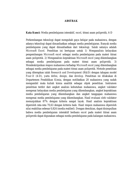 Amelia Rahmi, PENGEMBANGAN MEDIA PEMBELAJARAN TITRASI ASAM POLIPROTIK BERBASIS MICROSOFT EXCEL DAN GOOGLE SITES. Banda Aceh Fakultas FKIP (S1),2025