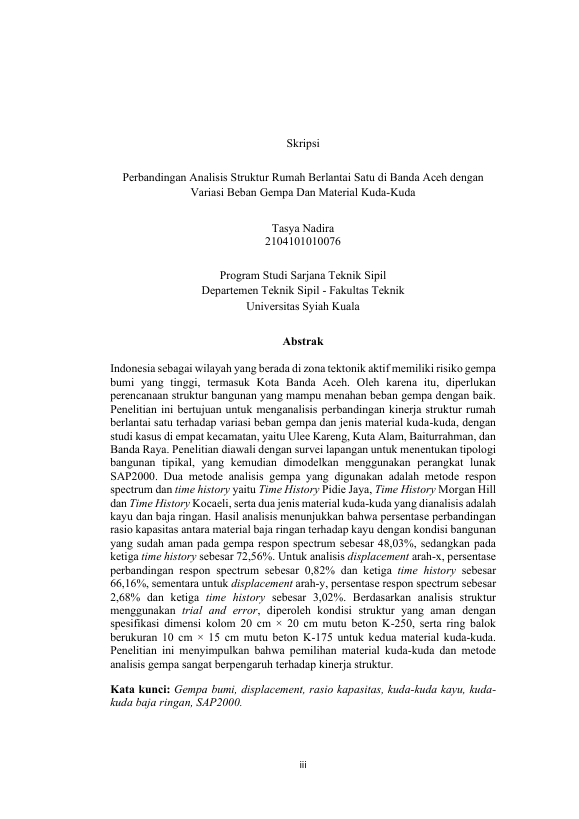 Baca Juga : KINERJA DESAIN STRUKTUR RUMAH 1 LANTAI AKIBAT BEBAN GEMPA DINAMIK DENGAN VARIASI KUDA-KUDA (Muhammad Yoga Pramana, 2025)