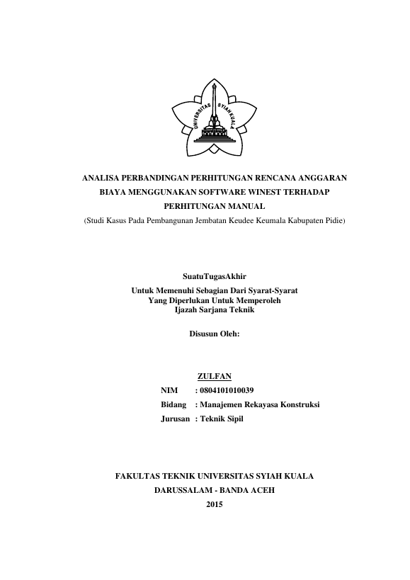 Baca Juga : APLIKASI PENGGUNAAN SOFTWARE WINEST PRO 15.2 DALAM MENGHITUNG RENCANA ANGGARAN BIAYA (STUDI KASUS GEDUNG SIMULASI PENGADILAN FAKULTAS HUKUM UNIVERSITAS SYIAH KUALA) (Helmi Zulmar, 2016)