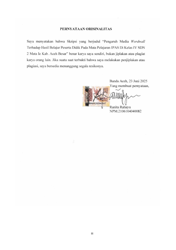 Baca Juga : EFEKTIVITAS PENGGUNAAN MEDIA BERBASIS WORDWALL DALAM PEMBELAJARAN PENDIDIKAN PANCASILA DI KELAS IV SD NEGERI 32 BANDA ACEH (MAULIDAR, 2025)
