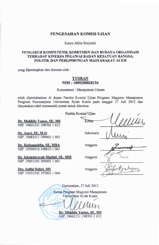 Baca Juga : PENGARUH KOMPETENSI, KOMITMEN DAN BUDAYA ORGANISASI TERHADAP KINERJA PEGAWAI BADAN KESATUAN BANGSA, POLITIK DAN PERLINDUNGAN MASYARAKAT ACEH (Yusran, 2025)
