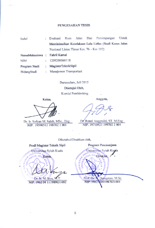 FAHRIL KAMAL, EVALUASI RUAS JALAN DAN PERSIMPANGAN UNTUKRNMEMINIMALKAN KECELAKAAN LALU LINTASRN(STUDI KASUS JALAN NASIONAL LINTAS TIMUR KM 76 – KM 102). Banda Aceh Fakultas Pasca Sarjana,2015
