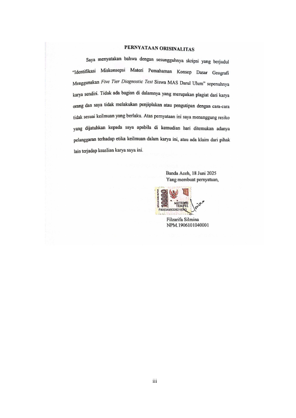 Baca Juga : IDENTIFIKASI TINGKAT PEMAHAMAN KONSEP DASAR GEOGRAFI MENGGUNAKAN FOUR-TIER DIAGNOSTIC TEST DISERTAI CERTAINTY OF RESPONSE INDEXRN(CRI) SISWA KELAS X IPAS SMAN 4 BANDA ACEH (Linda Mastuti, 2023)
