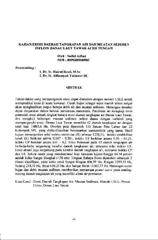 Baca Juga : KAJIAN PERUBAHAN PENGGUNAAN LAHAN DI DAERAH TANGKAPAN AIR DANAU LAUT TAWAR TAHUN 2007-2015 (Marisa, 2016)