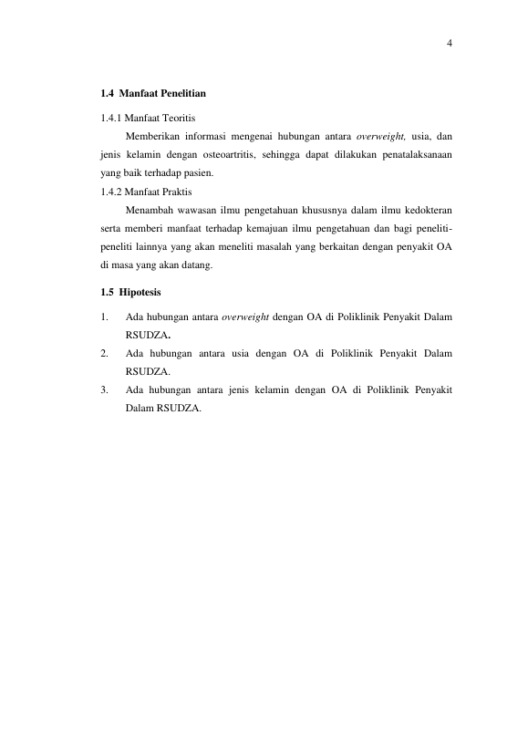 Topan Ardian, HUBUNGAN OVERWEIGHT DENGAN OSTEARTRITIS DIPOLIKLINIK PENYAKIT DALAM RSUDZA BANDA ACEH. Banda Aceh Fakultas Kedokteran,2013