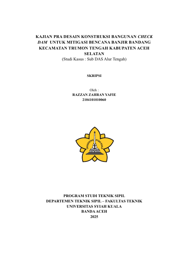 Baca Juga : KAJIAN PRA DESAIN KONSTRUKSI BANGUNAN CHECK DAM UNTUK MITIGASI BENCANA BANJIR BANDANG KECAMATAN TRUMON TENGAH KABUPATEN ACEH SELATAN ( STUDI KASUS : SUB DAS ALUR BARAT ) (Mohammad Nayef Afif, 2025)